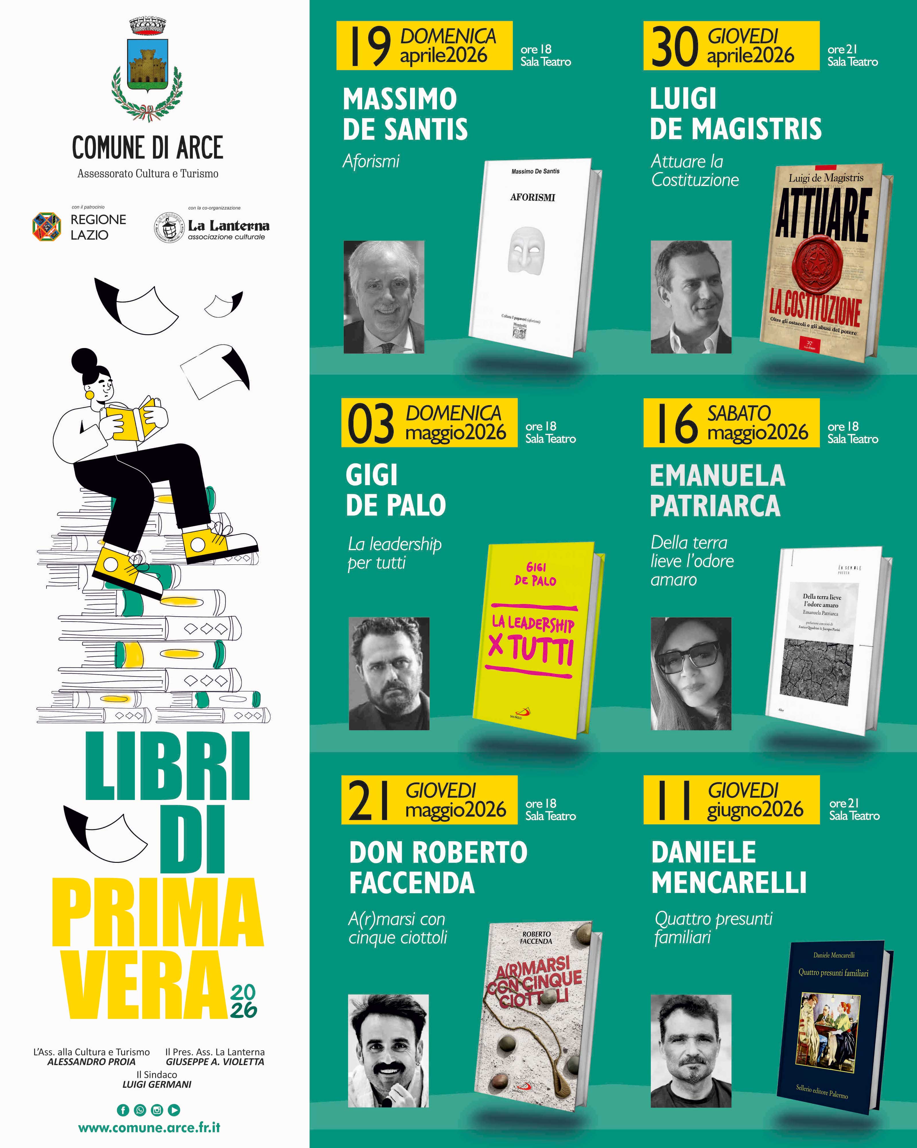 Torna la rassegna letteraria che negli anni ha portato ad Arce autori, storie e occasioni di confronto molto apprezzate dal pubblico.