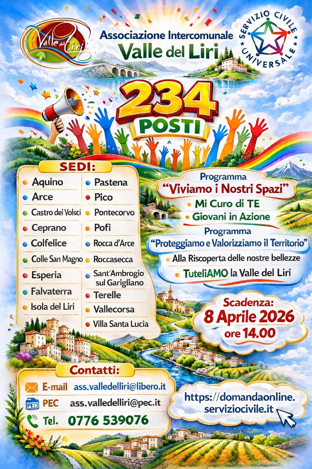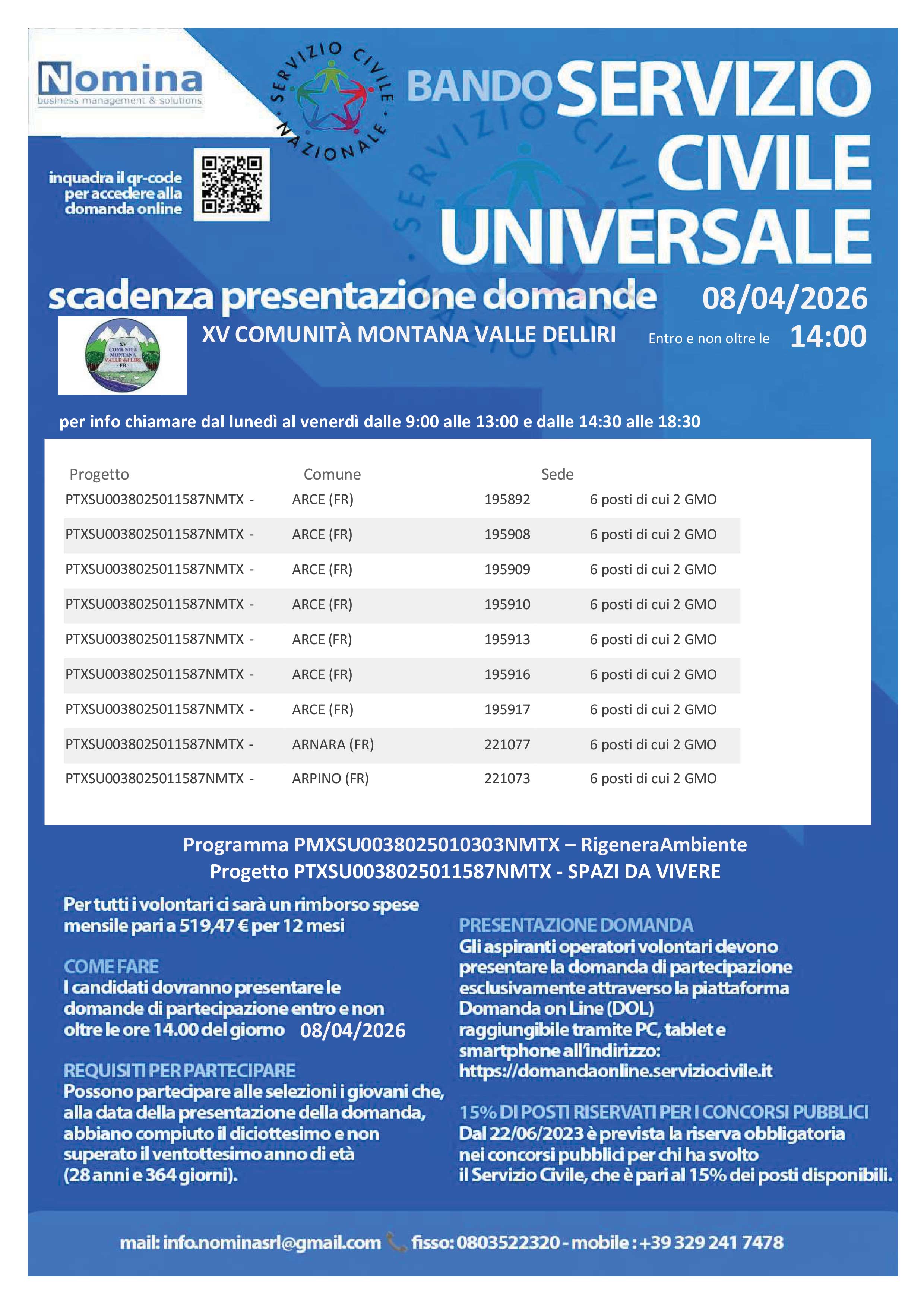 Nelle locandine allegate sono riportate le informazioni relative ai progetti e alle sedi che riguardano anche il Comune di Arce.