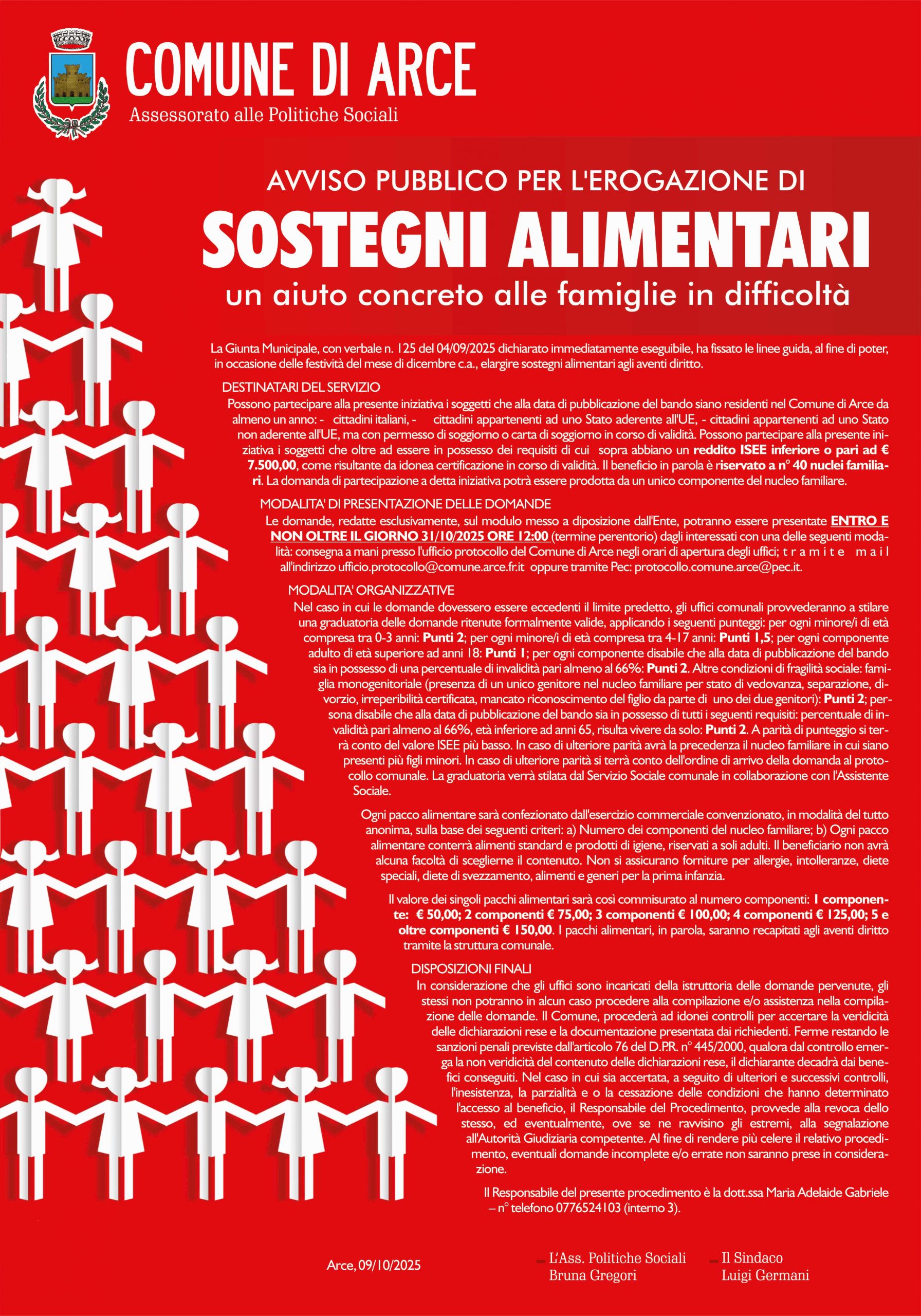 Si tratta di aiuti concreti alle famiglie in difficoltà con reddito (Isee) inferire a 7500 euro. Scadenza domande: giovedì 31 ottobre 2025, ore 12.00